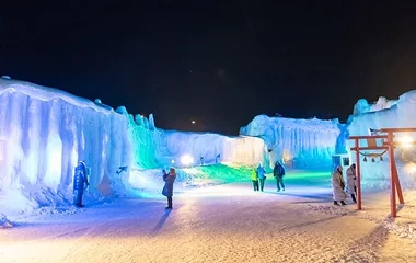 Sounkyo Ice Waterfall Festival is one of the major ice festivals in Hokkaido, held in Sounkyo Onsen, Kamikawa Town - a particularly popular resort town for tourists in search of some of Hokkaido’s best hot springs. The Ice Waterfall Festival is an incredible winter sightseeing experience while visiting Hokkaido. The average temperature in winter in Sounkyo is below freezing, and in January and February it can fall as low as 10 to 20 degrees below zero. For this reason, it is no surprise that an Ice Waterfall is formed from the freezing of liquid water seeping on rock. At the ice waterfall festival you will find a lot of ice sculptures; snow igloos; ice objects; and a rather large and impressive ice tunnel - all of which are illuminated at night. There is also an epic fireworks display to be admired at the festival. The fireworks are launched from behind the ice sculptures, creating gorgeous fire flowers in the night sky.